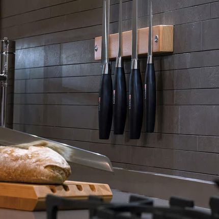 Эта элегантная и функциональная магнитная подставка для ножей обеспечивает легкий доступ к вашим любимым лезвиям. Вам больше не придется беспокоиться о беспорядке в ящиках или утомительных поисках подходящего ножа. Благодаря этому практичному решению вы сможете поддерживать порядок на кухне и выражать себя через кулинарные вкусы. Магнитная подставка для ножей, полностью изготовленная в Италии, является результатом инновационного проекта, направленного на разработку высококачественной линейки многофункциональных продуктов, идеально подходящих для использования в домашнем хозяйстве, а также в ресторанах и отелях. Он гарантирует надежное крепление всех типов кухонных ножей благодаря очень сильным неодимовым магнитам.