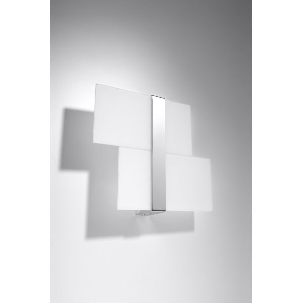 Функциональный настенный светильник из белого стекла — предложение для современных элегантных интерьеров. Сочетание белого цвета с деревом или сталью — интересное, иногда грубое сочетание. Однако это впечатление пропадает при включении лампы – белое стекло прекрасно освещает свет, радуя своим видом.
