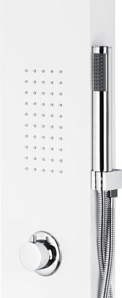 Глубина панели: 70 мм, Радужный радиус действия: 500 мм, Шланг: 1500 мм, Ручной душ: 200 мм, Крепление: настенное/угловое, Вес панели: 5,1 кг. Корпус панели: Изготовлен из алюминия - порошковое покрытие белого цвета. Материалы, используемые в производстве, гарантируют прочность и надежность. Алюминиевая напыленная поверхность была покрыта белой краской, нанесенной по технологии Color Plus. Порошковое покрытие гарантирует необычайно прочную структуру цвета, а поверхность панели отличается высокой устойчивостью к внешним факторам. Хромированная отделка стальных элементов, таких как ручки, рукоятки и душевая лейка, выглядит великолепно и может сочетаться по цвету с другими смесителями для ванной комнаты. Благодаря технологии Corsan Anti Wipe панель легко содержать в чистоте, не оставляя разводов и пятен. Панель защищена системой Corsan Saving, поскольку имеет головки с керамическими вставками и обратными клапанами, которые предотвращают обратный поток воды в установку. Стоит также отметить, что все душевые панели Corsan соответствуют европейским стандартам и стандартам качества, включенным в декларацию CE.