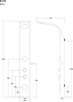 Технические параметры: Материал: бамбуковое дерево, Отделка: хром, Высота: 1400 мм, Ширина - 200 мм, Досягаемость тропического душа: 510 мм, Расстояние от стены: 80 мм, Шланг: 1500 мм, Ручной душ: 200 мм , Установка: стена/угол.
