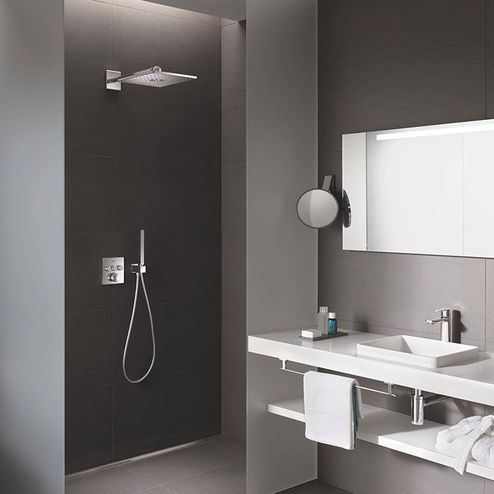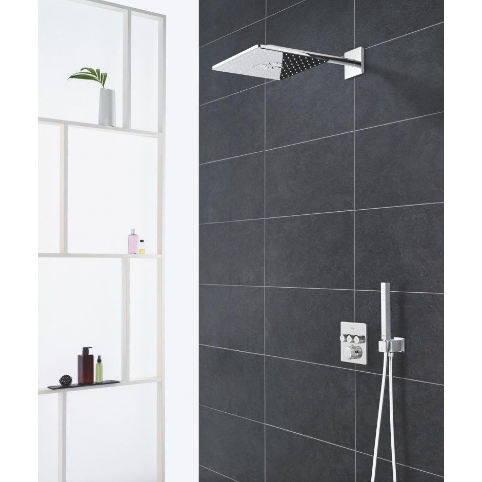 Душевая система скрытого монтажа GROHE Grohtherm SmartControl 310 Active Cube – идеальный выбор для любителей стильного, минималистичный дизайн и высокий комфорт купания. Состоит из душа. руководство со шлангом и тропическим душем на кронштейне, двумя скрытыми элементами и инновационный смеситель GROHE SmartControl, поэтому он представляет собой комплексное решение для Ваша душевая кабина.