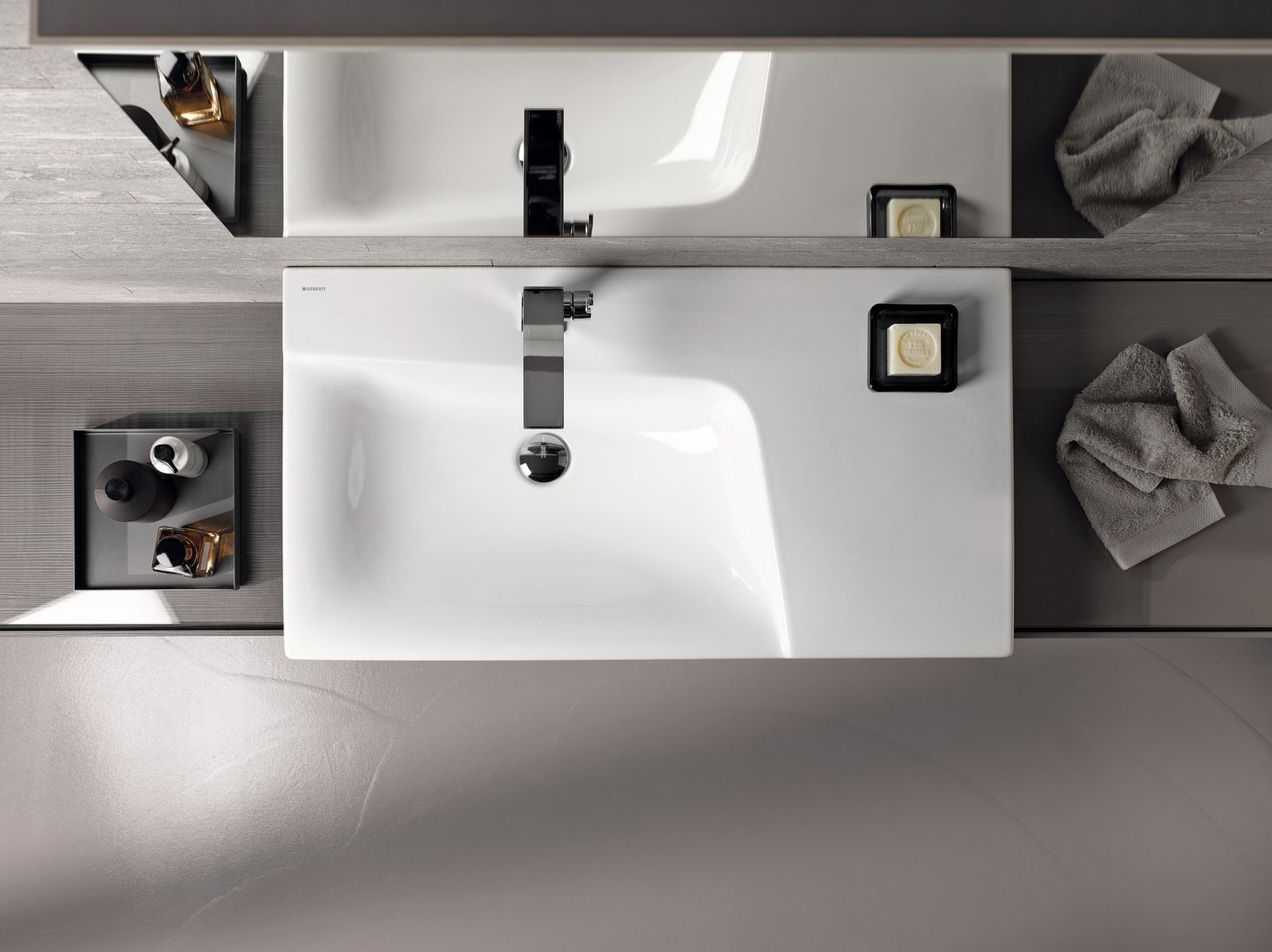Умывальник Geberit Xeno² с поверхностью для храненияМатериал: сантехническая керамика