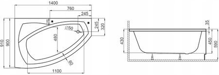 | Ориентация ванны | Prawa |