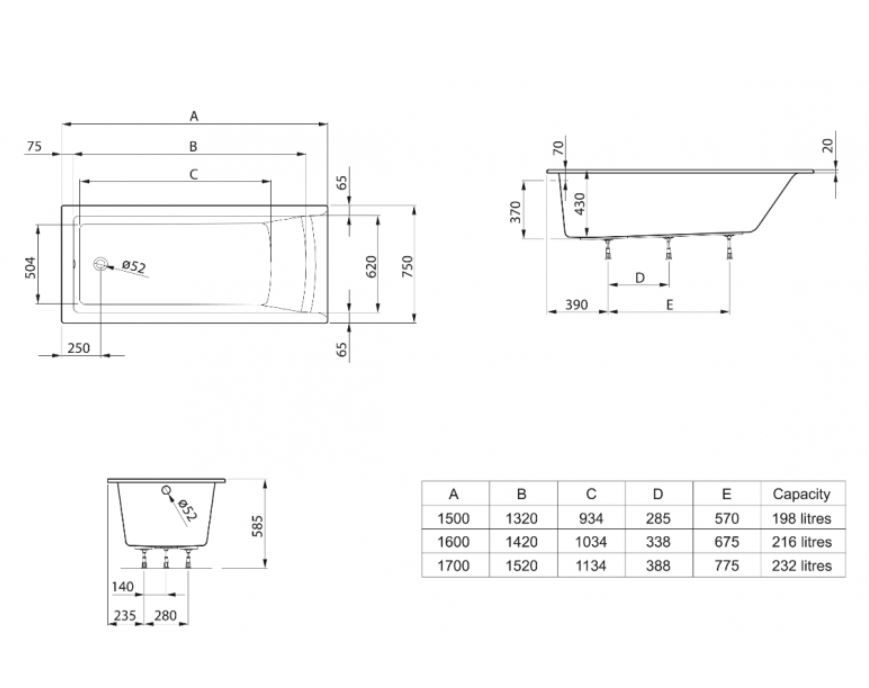 Прямоугольная ванна Roca Savai 170x75 см. акрил, белый