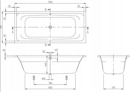 •- цвет: белый (Weiss Alpin)- материал: акрил- современный, минималистичный дизайн- размеры: 170х75 см- размеры дна ванны: 120,5х47,5 см- диаметр слива: 52 мм- глубина: 44 см- вес: 18,5 кг - идеальный и удобный профиль ванны - высокий комфорт использования - объем ванны: 149 л - слив посередине - высота здания (мин/макс до края): 56,5-61,5 см - необходима расширенная система перелива и слива
