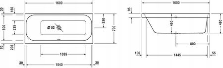 • Это прямоугольная ванна общим размером 1600 х 700 мм от немецкого производителя Duravit из серии Happy D.2. Размеры дна ванны 1055 х 355 мм. Изделие имеет вневременную прямоугольную форму. Изделие необходимо комплектовать ножками 790100000000000. Ванна изготовлена из приятного на ощупь сантехнического акрила. Ванна предназначена для встраивания в плитку или соответствующий мебельный корпус. Мы рекомендуем вам ознакомиться с другими продуктами Duravit на нашем сайте.