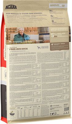 Acana SINGLES Free-Run Duck — сухий повнораціонний корм_x000D_ присвячений дорослим собакам усіх порід. Рецепт страви враховує все_x000D_ природні харчові потреби собак. Склад корму заснований на свіжих і_x000D_ повністю натуральні інгредієнти з Онтаріо, Канада. Неповторний смак_x000D_ соковита качка, яка є єдиним джерелом тваринного білка_x000D_ зачарує навіть найвибагливіших гурманів. Додавання свіжої груші_x000D_ Бартлетт і цілий гарбуз масляний забезпечують потрібну кількість вітамінів і мінералів._x000D_ Вміст вуглеводів і синтетичних інгредієнтів обмежено на користь_x000D_ свіжого м'яса. Це смачний і здоровий раціон для вашого вихованця Переваги корму Acana SINGLES Free-Run Duck: - високий вміст_x000D_ свіже м'ясо - для дорослих собак_x000D_ всі породи - монопротеиновая їжа_x000D_ - качка як єдине джерело білка - обмежена_x000D_ вуглеводів на користь тваринного білка - рецепт у відповідності з_x000D_ природні харчові потреби собак - найвищі_x000D_ якісні, натуральні та свіжі інгредієнти - багатство_x000D_ різні вітаміни та мінерали - без глютену та_x000D_ картопля - абсолютно здорова і_x000D_ безпечний склад - підходить для_x000D_ чутливі собаки - суха суміш - вуглеводи_x000D_ низький глікемічний індекс - смак, який ми любимо_x000D_ собаками в усьому світі - висока прийнятність_x000D_ серед собак - джерело інгредієнтів_x000D_ поживні речовини