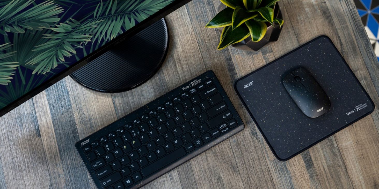 Миша Acer Vero Mouse на 30% виготовлена з перероблених (PCR) матеріалів і має унікальний, екологічно чистий матеріал, відкриваючи нову еру екологічних технологій.