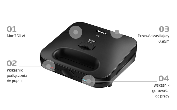 | Плитка увімкнена | Do gofrów, Do grilla, Do kanapek |