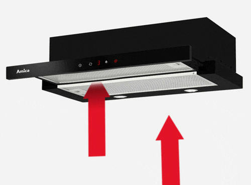 Просто посуньте панель, і витяжка ввімкнеться з вибраною потужністю поглинання.
