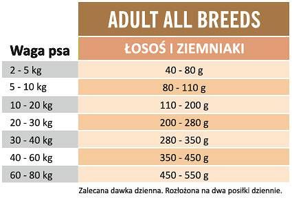 Дозування корму Arion з лососем і картоплею для дорослих собак будь-якої породи