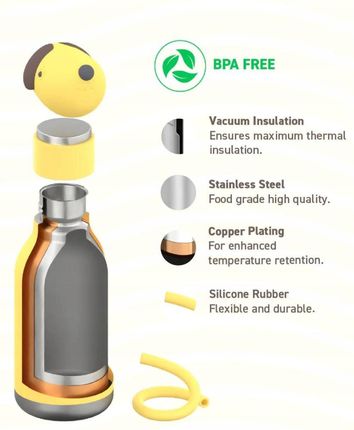 Термопляшка з соломинкою Asobu Butelka Termiczna Ze Słomką Bestie Pies 460Ml, фото 3