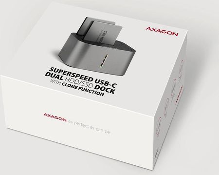 SuperSpeed USB-C 5Gbps AXAGON ADSA-DC DUAL CLONE док-станція/станція для клонування - легко та швидко підключіть два накопичувачі 2,5 або 3,5" до комп'ютера одночасно. Підключення до комп'ютера можливо шляхом підключення сучасного подвійного односторонній роз’єм USB-C у док-станції разом із кабелем USB-C USB-A довжиною 80 см із 80 см у комплекті.