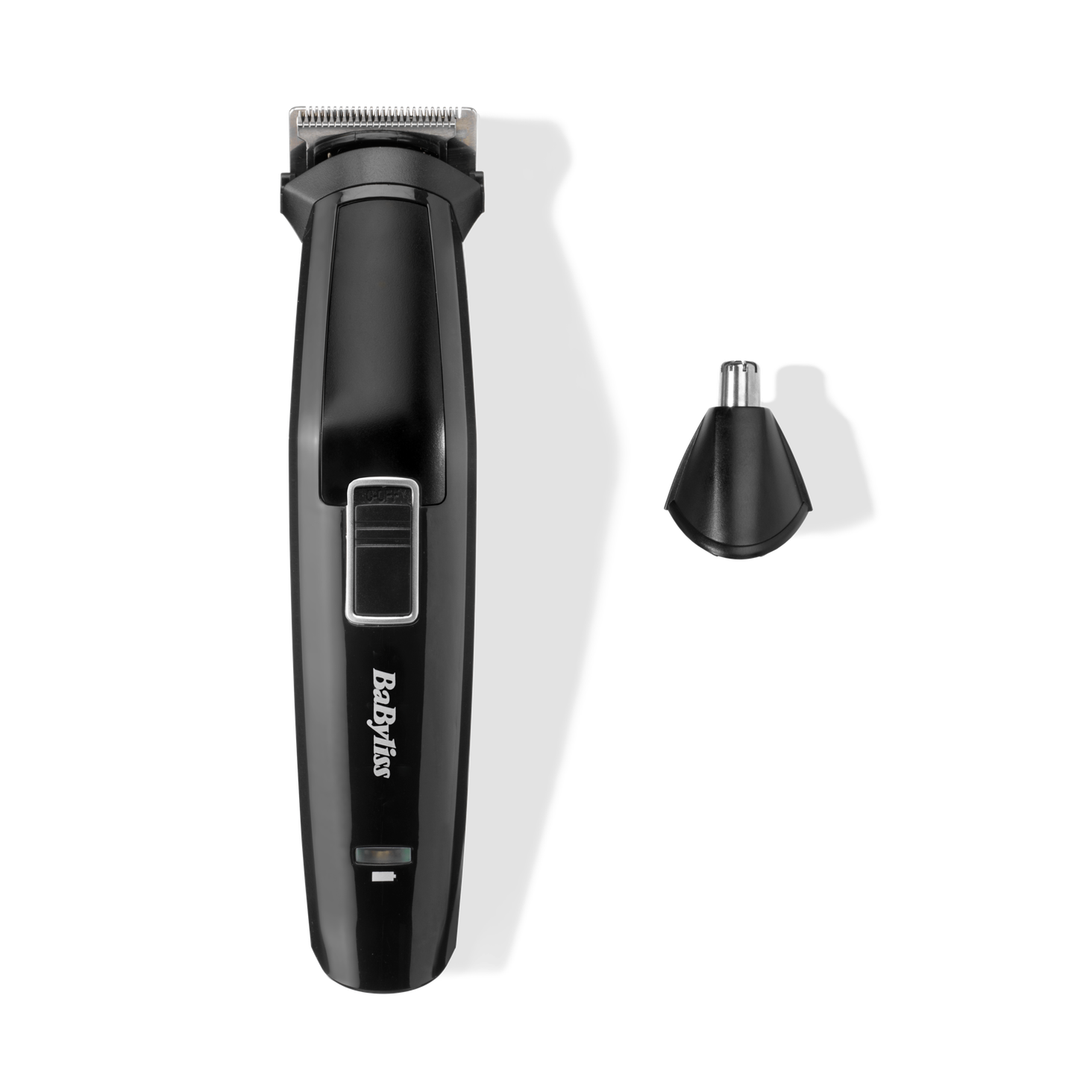 Тример BaByliss MT725E постачається з двома змінними головками: одна є прецизійним тримером, а інша призначена для видалення волосся в носі.