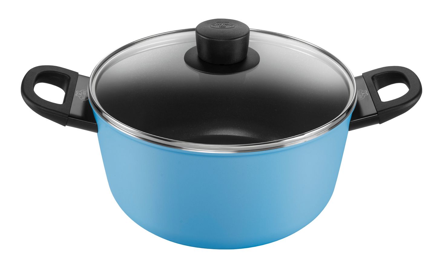 Капрера з кришкою, діаметр 24 см. Синій колір обробки. Антипригарне покриття KERA GLOSS. Технологія дна Radiant Induction. Дві ергономічні ручки.