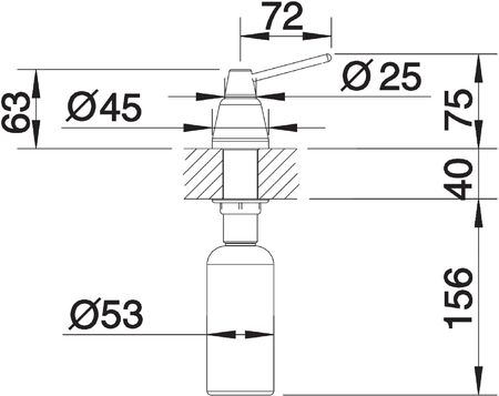 Технічні поради: Ємність: 250 мл Для кріплення дозатора потрібен отвір діаметром 35 мм.