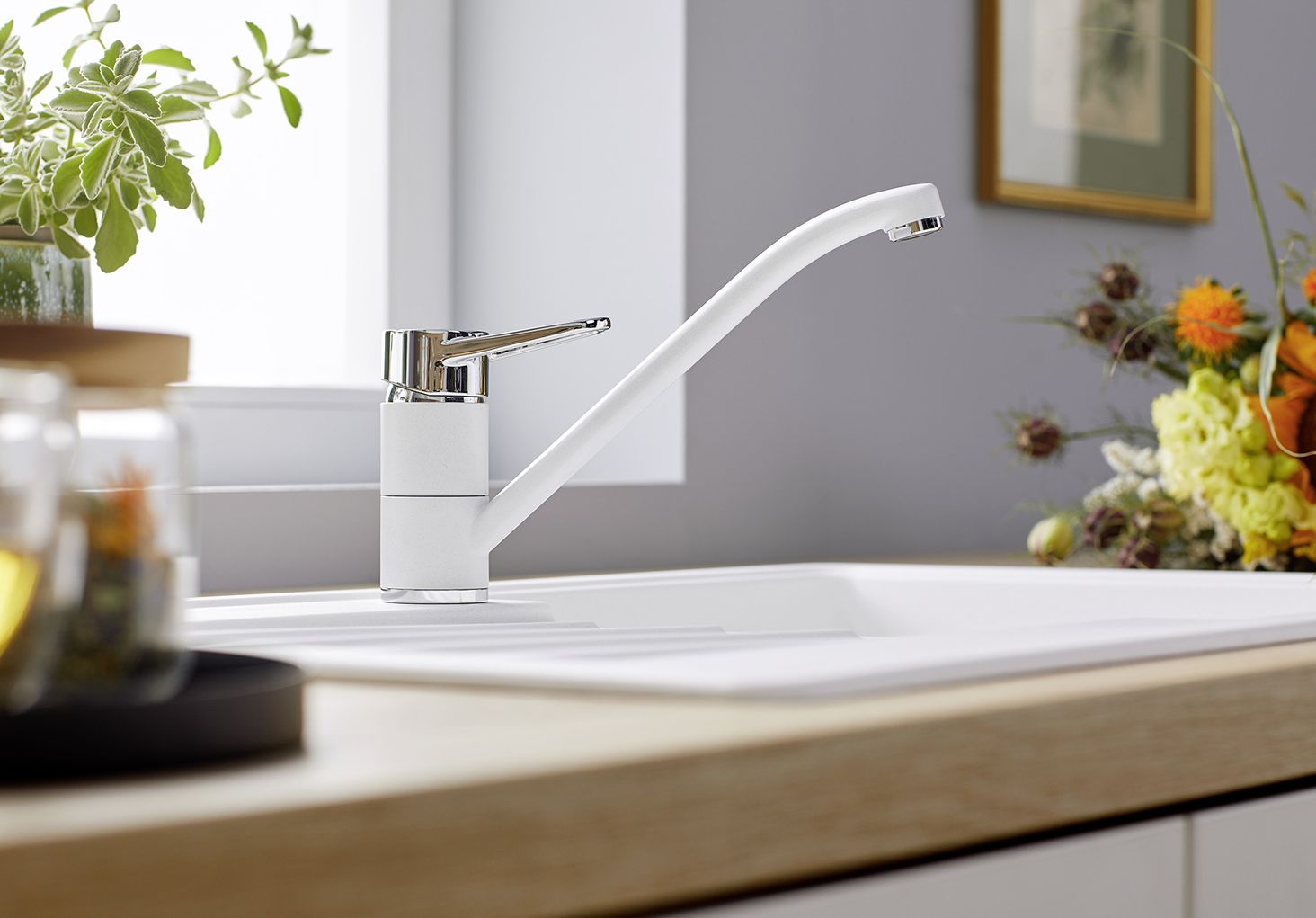 Важіль змішувача, розташований у верхній частині, полегшує роботу та планування кухні з двома типами струменя: легке перемикання з ламінарного струменя, особливо рекомендованого для компактних раковин і раковин Кольоровий варіант ідеально підходить для раковин і чаш SILGRANI. Кут повороту виливу 180° Необхідний отвір змішувача 35 мм Головка з керамічними пластинами Гнучкі з’єднувальні труби довжиною 550 мм і гайка ⅜'' забезпечують винятково швидку та безпечну установку Запатентований регулятор потоку зменшує утворення накипу на головці крана Пластина жорсткості підвищує стабільність крана при встановленні з мийками з нержавіючої сталі Сертифікат LG A Планується Сертифікат DVGW (Німецька асоціація газу та економіки) Вода)