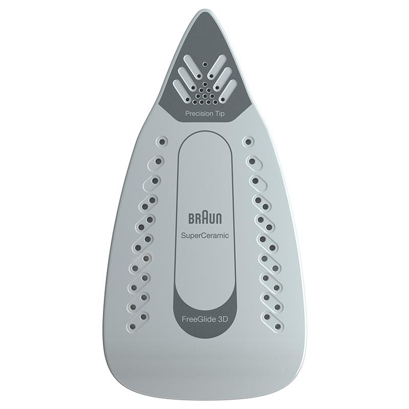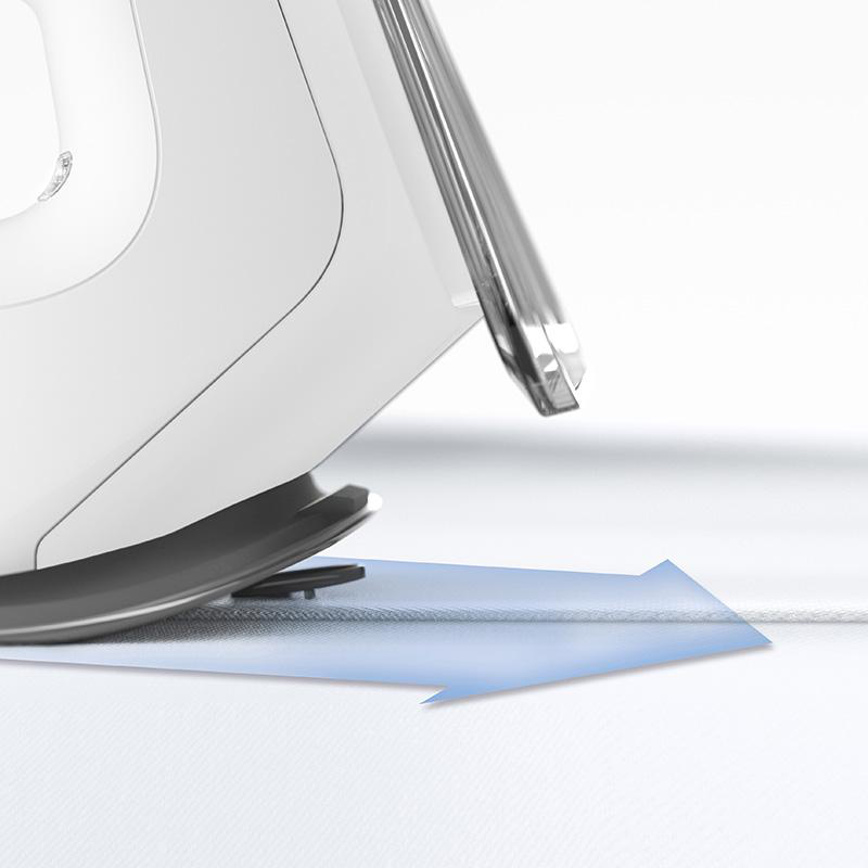 Перша у світі підошва FreeGlide 3D із заокругленими та скошеними краями дозволяє ефективно маневрувати праскою в усіх напрямках, не зминаючи матеріал. Форма стопи, натхненна сноубордом, дозволяє легко маневрувати праскою в усіх напрямках (вперед і назад), прискорюючи весь процес прасування. Важкодоступні місця, наприклад навколо блискавок, ґудзиків, рюшів і складок, більше не є проблемою. Прасувати за допомогою парової праски Braun швидко, просто та приємно.