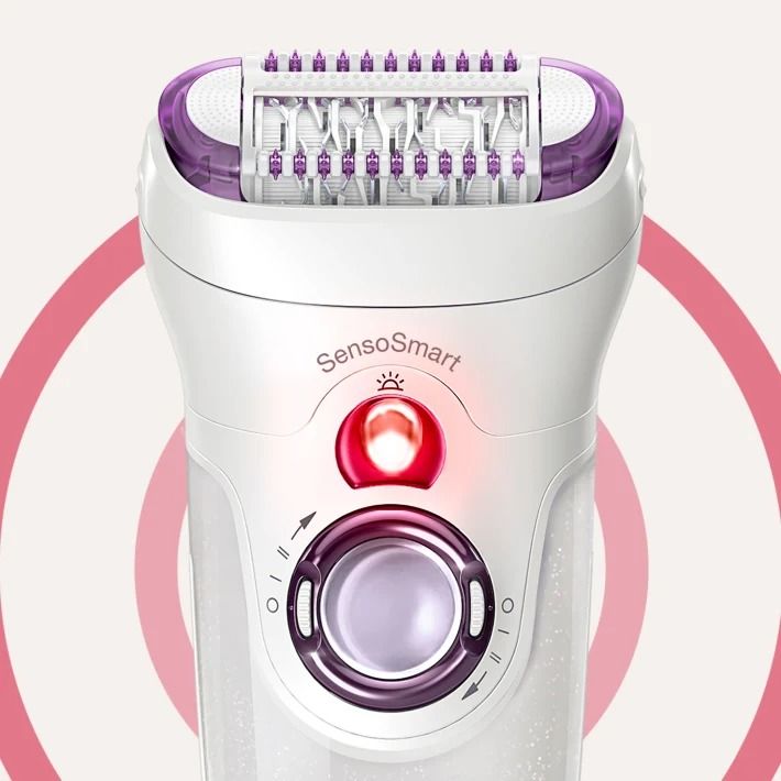 Технологія SensoSmart™ допомагає під час епіляції, вмикаючи червоне світло, коли тиск на шкіру занадто великий.
