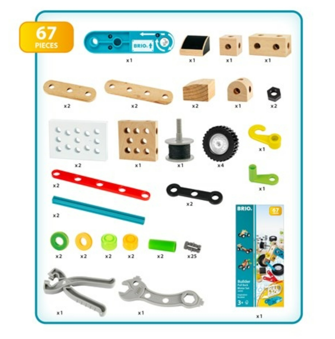 Набір двигунів BRIO Builder виводить вашу серію BRIO Builder на новий рівень задоволення завдяки додаванню справжнього двигуна, що живиться від батареї, який приносить руху вашим творінням. Цей монтажний набір чудово розважає молодих інженерів, коли вони вивчають техніку будівництва, вирішення проблем і отримують задоволення від створення чогось, що рухається самостійно. Набір двигунів сумісний з усіма продуктами серії BRIO Builder, а завдяки 120 елементам ідеї молодих інженерів обмежені лише їхньою уявою.