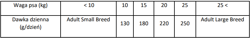 | Розмір собаки | Rasy średnie (10-25kg) |