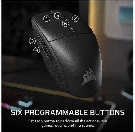 ІГРОВА МИША Будьте нестримною силою, вільною від проводів. Універсальна миша CORSAIR M55 WIRELESS підходить для рук будь-якого розміру та стилю тримання завдяки своїй компактній симетричній формі. НАДЗВИЧАЙНО ЕЛЕГАНТНИЙ Проста конструкція бездротової миші M55 WIRELESS полегшує керування та маневрування під час стрімких ігор.
