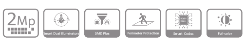 Технологія Dahua Smart Dual Illuminators використовує інтелектуальний алгоритм, який дозволяє висвітлювати сцену білим світлом, коли об’єкт з’являється в кадрі. Коли в кадрі більше немає об’єкта, що цікавить, камера повертається до чорно-білого режиму.