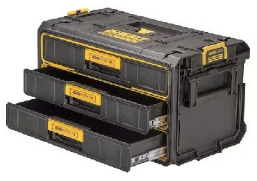 DWST08330-1DEWALT Комод ToughSystem 2.0 ВЕЛИКИЙ МІСЦЕ ДЛЯ ЗБЕРІГАННЯ - Використовуйте 3 неглибокі ящики для зберігання інструментів і аксесуарів у складних робочих місцях - Швидко відкривайте і закривайте ящики завдяки металевим направляючим на шарикопідшипниках і аксесуари для транспортування з міцними ручками Три неглибокі ящики DEWALT TOUGHSYSTEM 2.0 забезпечують миттєвий доступ до інструментів без необхідності знімати додаткові модулі. Високоміцні висувні ящики плавно відкриваються та закриваються на кулькових підшипниках, забезпечуючи надійну роботу в будь-який час. Завдяки автоматичним фіксаторам блок можна легко під’єднати до інших пристроїв TOUGHSYSTEM та ящиків для інструментів. ЯЩИКИ ШВИДКОГО ЗАКРИВАННЯ - Надійно зачиняйте висувні ящики за допомогою механізму швидкої фіксації. Розблокування одним дотиком – прикріплюйте та видаляйте додаткові блоки зберігання за допомогою запатентованої автоматичної системи - з'єднувальні бічні засув