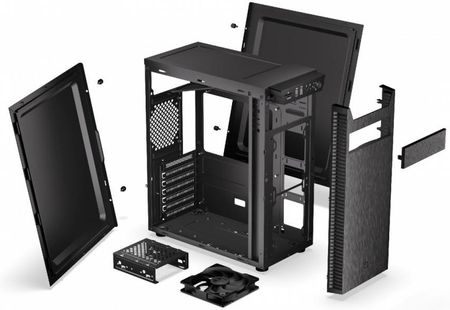 Технічні характеристики Тип корпусу: Midi Tower Стандарт материнської плати: ATX / Micro ATX / Mini ITX / FlexATX Тип блоку живлення: ATXБічна панель: Металева Підсвічування: НіМаксимальна довжина відеокарти: 335 ммМаксимальна висота охолодження процесора: 165 мм Внутрішні відсіки для дисків: 2,5 дюйма - 4 шт 3,5 дюйма - 1 шт. / 3,5 дюйма - 1 шт шт / 5,25 дюймів Максимальна кількість вентиляторів: 1 Встановлені вентилятори: 1 шт., USB 3.2 Gen шт.. Аудіороз’єм: 1 шт.. Кнопки: Power / Reset. Колір: Чорний. 200 мм Глибина: 388 мм Вага: 2,85 кг Додаткова інформація: пристрій для читання карток SD/microSD Аксесуари в комплекті: аксесуари для кріплення