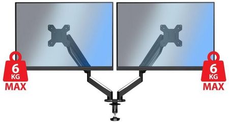 Розміри монітора: 17”-27” Максимальне навантаження на тримач: 2 x 6 кг Стандарт VESA: 75 x 75 мм - 100 x 100 мм Регулювання нахилу (вгору/вниз): +80°/-80° Регулювання вправо/вліво : +90°/-90° Регулювання висоти монітора: 0-400 мм Поворот екрана: 360° (ПІВОТ) Максимальний охоплення руки: 55 см Максимальна висота руки: 61,5 см У комплекті: аксесуари для кріплення