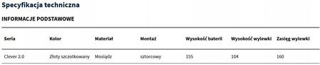 Clever 2.0 — це серія фурнітури, яка є квінтесенцією сучасного дизайну та передових технологій. Представлена модель із матового золота є ідеальним поєднанням елегантності та функціональності, призначена для вимогливих користувачів, які шукають інноваційні рішення для своєї ванної кімнати. Змішувач для умивальника Clever 2.0 із матового золота – це не лише унікальна естетика. Це також гарантія найвищої якості завдяки використанню передової технології PVD (Physical Vapor Deposition). Цей процес забезпечує надзвичайно міцну поверхню, стійку до подряпин. Завдяки цьому змішувач зберігає свій колір протягом багатьох років і легко миється.