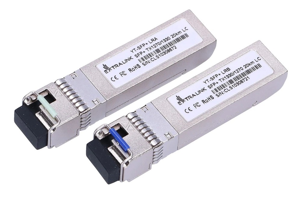 Набір із двох одномодових SFP-вставок працює двонаправлено на одному волокні при 1270/1330 нм на відстані до 20 км. Електричний інтерфейс оптоволоконного модуля SFP 10G відповідає електричним специфікаціям SFI. Приймач перетворює послідовні оптичні дані 10 Гбіт/с у послідовні електричні дані PECL/CML. Одномодова вставка SFP оснащена двопровідним послідовним інтерфейсом I2C для послідовної ідентифікації, цифрової діагностики та керування модулем. Покращений інтерфейс моніторингу цифрової діагностики забезпечує доступ у режимі реального часу до оптичного модуля SFP, що дозволяє контролювати отриману оптичну потужність, струм лазерного променя, вихідну потужність лазера тощо. Однорежимні модулі SFP+ призначені для роботи з Ethernet 10 Гбіт/с, SONET /SDH маршрутизатори та комутатори, 10G/8.5G/4.25G/2.125G/1.0625G волоконно-оптичні канали та інші канали зв'язку оптичний 10 Гбіт/с.