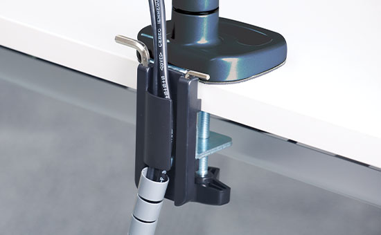 Один кронштейн монітора також включає міцний настільний затискач і прохідне кріплення. Завдяки їм монтаж цього ергономічного рішення пройде без проблем і додатково дасть вам впевненість у тому, що вся конструкція є стабільною та повністю безпечною.