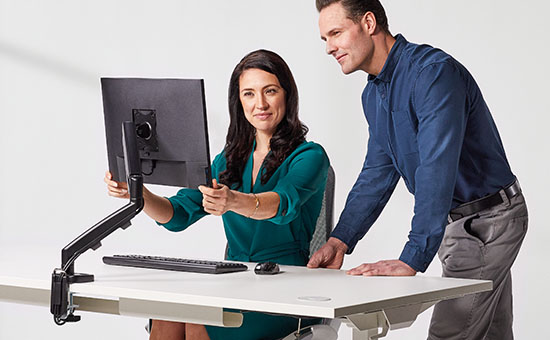Одна кронштейн для монітора Eppa™ не тільки покращить ергономіку роботи у вашому офісі, але й чудово доповнить його розташування. Рішення доступне в 3 кольорах на вибір (білий, чорний і сріблястий, які вдало поєднуються з іншими елементами інтер’єру), серед яких: письмові столи, крісла, полиці та навіть інші пристрої.