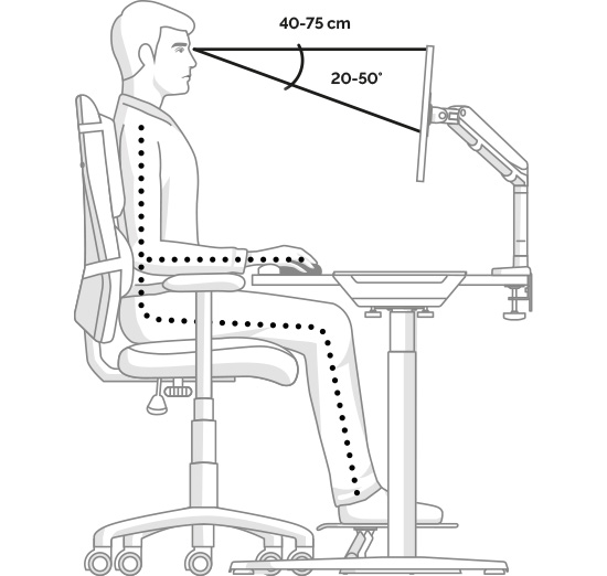 1. Досяжність руки: сидячи або стоячи, переконайтеся, що ваш монітор розташований так, щоб ви могли торкатися екрана кінчиками пальців і легко читати те, що на екрані, не напружуючи зір.