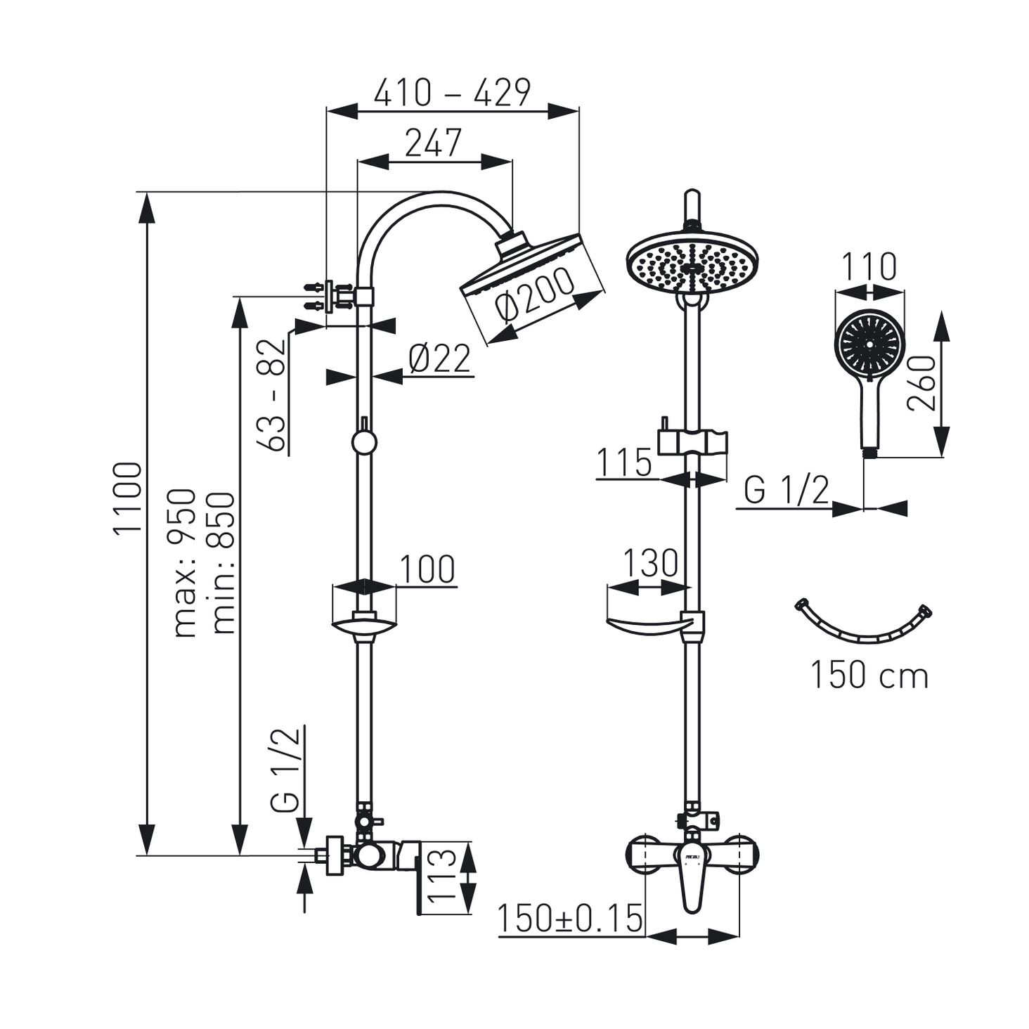 Дощова лійка з душем і краном Algeo (NP71-BAG7U)
