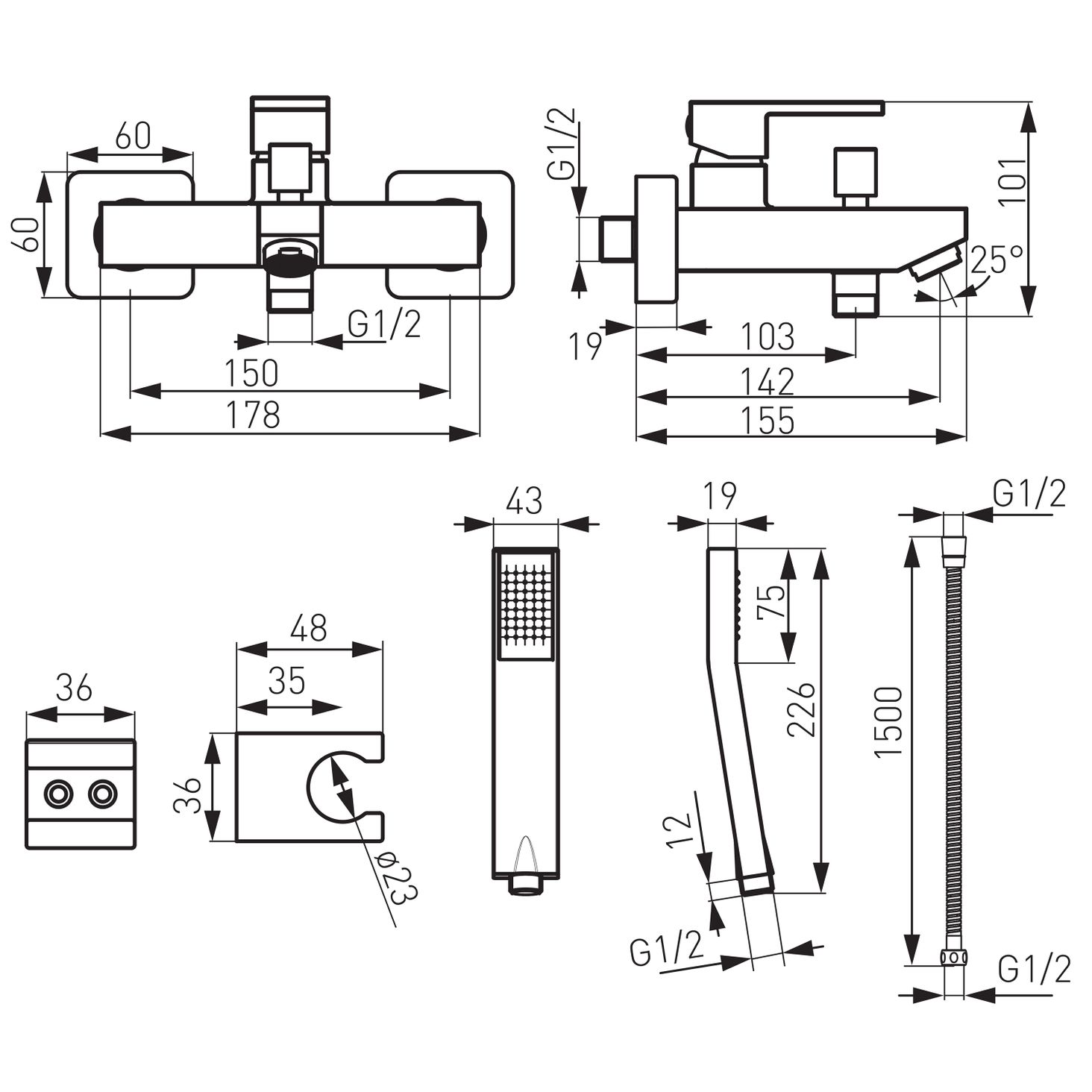 Основна інформація: з точковим душем, керамічним регулятором, автоматичним перемикачем ванна/душ із замком, регулятором струменя M24x1, ексцентриковим підключенням G1/2, відстань 150 ± 20 мм, хром