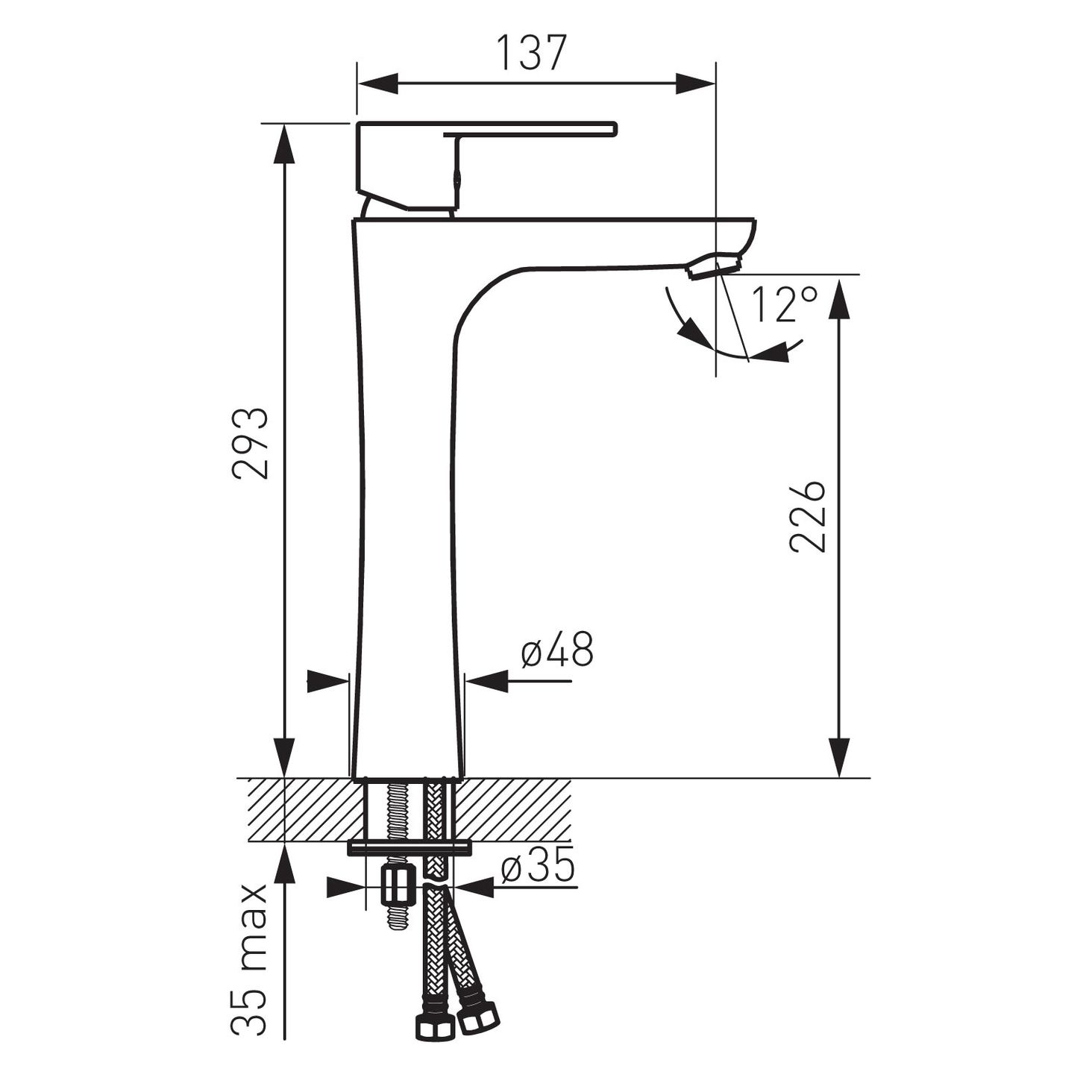 Основна інформація: керамічний регулятор, монтаж на один отвір, струменевий регулятор M24x1, гнучкі з'єднання G3/8 - M10x1хром