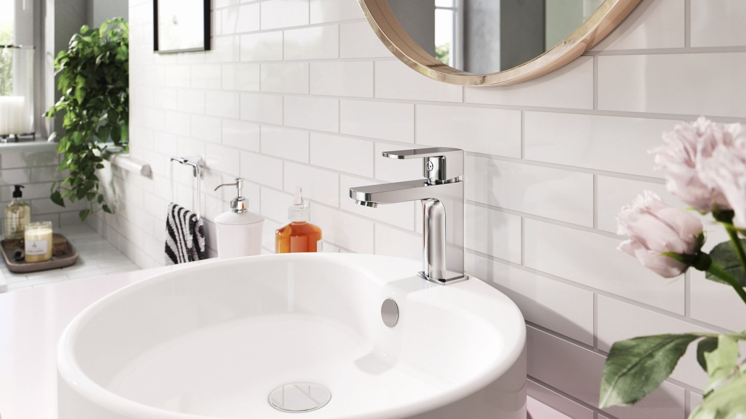 Змішувачі Alba Verdeline виправдовують усі очікування щодо екології. Багатовимірність білого кольору, використаного у ванній кімнаті, додатково розбита пастельними акцентами, є ідеальним фоном для блискучих хромованих змішувачів Alba. Вибирайте сантехніку та аксесуари для ванної кімнати, які є дуже простими та класичними за обробкою та формою.