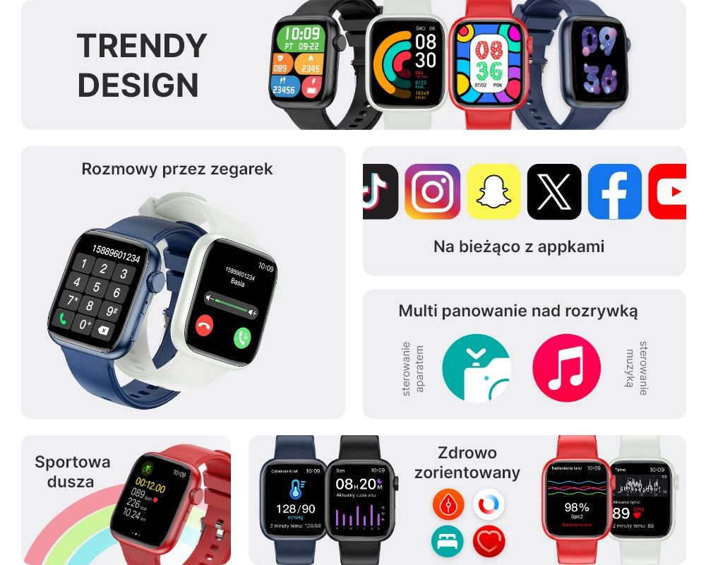 | Вимірювання | Pulsometr, Krokomierz, Kalorie, Czas i jakość snu |