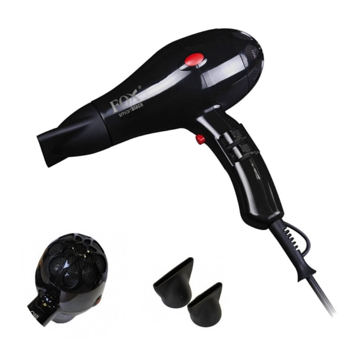 Професійний, компактний іонізуючий фен Fox Smart. Сушарка відрізняється не тільки високою потужністю двигуна, але й іонізацією, функцією охолодження повітря та дизайнерським виглядом. Пристрій ідеально підходить для повсякденного укладання волосся.