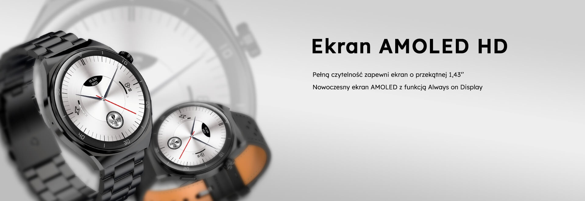 Зовнішні умови більше не заважатимуть вам перевіряти час, сповіщення про текстові повідомлення та дзвінки,_x000D_ прогнози погоди або біометричні вимірювання, зроблені з програми. Вся інформація буде_x000D_ ідеально видно. Їх повну читабельність забезпечує 1,43-дюймовий AMOLED HD-екран. Крім того, функція_x000D_ постійне підсвічування Always on Display виглядає надзвичайно елегантно та дозволяє перевірити_x000D_ годин без активації екрана.