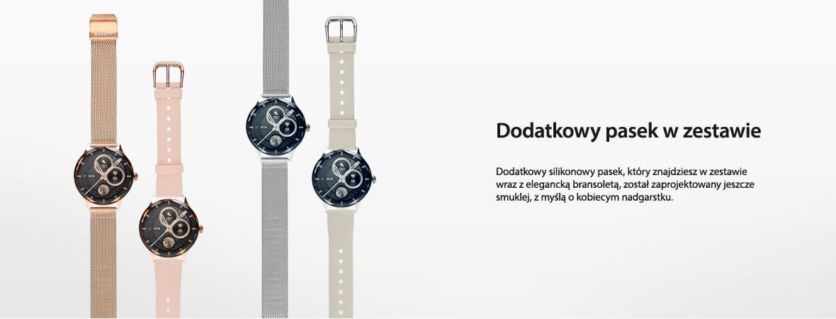 | Додаткові функції | Stoper, Powiadomienia z telefonu, Budzik, Minutnik, Krokomierz, Kalkulator |