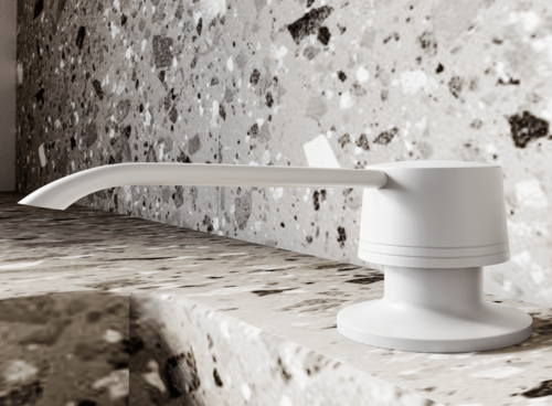 Ємність об'ємом 350 мл дозволяє вільно використовувати дозатор без необхідності частого доливання рідини. Дозатор наповнюється зверху, що гарантує більш зручне використання мило для рук. Пляшка з миючим засобом встановлена під стільницею, що забезпечує кращий порядок в зоні мийки та позитивно впливає на естетику кухні. Білий колір дозатора надає їй елегантний вигляд і чудово доповнить кухню розташування.