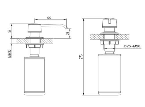 Дизпенсер призначений для монтажу на стільницю.