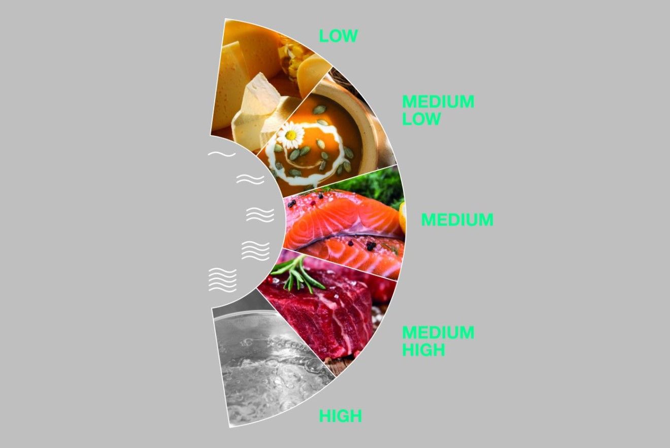 Встановлення рівня потужності на 100%, 70%, 50%, 30% або 10% дає змогу налаштувати приготування їжі відповідно до ваших потреб. Висока потужність чудова, якщо ви хочете швидко нагріти щось, наприклад, коли ви кип’ятите воду або готуєте супи. Середній рівень дозволяє готувати продукти на пару або смажити, тоді як низький рівень підходить для приготування вершкових супів і може діяти як дегідратор.