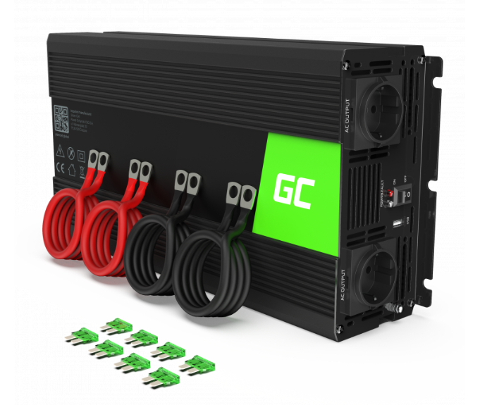 Перетворювач, також званий інвертором або перетворювачем, – це пристрій, завданням якого є зміна постійної напруги від автомобільного акумулятора чи гнізда прикурювача на ~230 В змінного струму. Точно така ж напруга є в кожній домашній розетці (тип F) по всій Європі. Перетворювач Green Cell 24V на 230V 1500W/3000W - відмінний вибір для людей, які збираються в подорож на автомобілі, кемпері або вантажівці - завдяки йому ви зможете вільно використовувати всі необхідні пристрої, для роботи яких потрібна розетка.