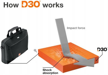 Простіше кажучи: завдяки унікальним властивостям матеріалу гнучкий D3O вже широко використовується, наприклад, у Формулі-1. Для цього з нього виготовляють захисний одяг і спеціальні протектори для всіх частин тіла, які вимагають великої свободи рухів і особливо вразливі в мотоспорті, наприклад, у разі падіння з мотоцикла. Будучи інноваційним захисним покриттям, тепер він також захищає ваш ноутбук у вашій діловій сумці: ваша безпека надійна, незалежно від того, наскільки інтенсивним є ваш робочий день. Протиударний захист для вас і ваших пристроїв - щоб ви могли відпочивати цілий день!
