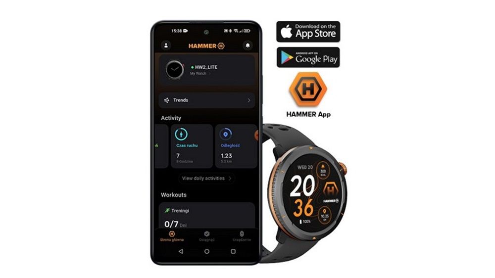 Ви можете керувати своїм годинником за допомогою програми HAMMER, яка дає вам доступ до всіх збережених вимірювань і тренувань. Ви знайдете все, що вам потрібно, в одному місці.