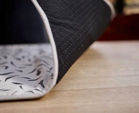 Килимок займає мало місця в порівнянні з дошкою і зручний - його можна швидко перенести і згорнути. Він стійкий до температури до 200ºC. Килимок для прасування Joseph Joseph Ecru Scatter Swift Ironing Mat має додатковий елемент для праски Ви можете сміливо розміщувати пристрій на силіконовій підставці - вона термостійка. Килимок виготовлений з бавовни кремового кольору з чорним малюнком. Він має водонепроникне дно DripLock із фетровими шарами та водонепроникну та неслизьку основу.